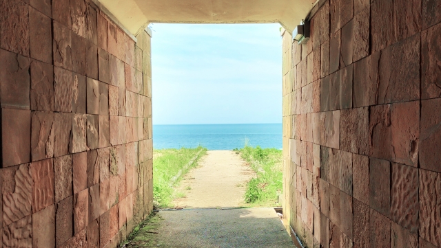 トンネルを抜けた先の青い海